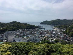 天正19年(1591年)、朝鮮出兵(文禄慶長の役)にあたり、豊臣秀吉の御座所として築城された城。出兵の一大拠点であった肥後名護屋城(佐賀県唐津市)から、勝本城(壱岐市)、釜山(朝鮮半島)につながる重要な軍事中継点であった。現在は、標高210mの清水山の尾根沿い東西約500mにわたり、一ノ丸(本丸)、二ノ丸、三ノ丸の3段曲輪が並び、斜面には石垣が残っている。昭和59年(1984年)、国の史跡に指定された。各曲輪からは、厳原(いづはら)の町並みや、厳原港を一望できる。