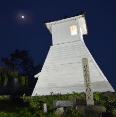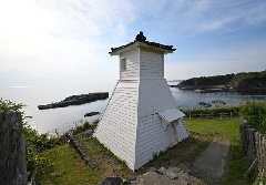 日和山と呼ばれる断崖の上にある、日本で最も古いとされる木造灯台。1608年に福浦の日野資信(すけのぶ)が篝火をたき、夜の暗い海を航行する舟を導いたことが「灯台」の始まりといわれる。現在の灯台は、1876年に日野吉三郎が建造したもの。付近の坂道には石畳が敷かれ、昔ながらの漁港風情が残っており、映画のロケ地としても知られる。夏と冬にはライトアップも行われる。