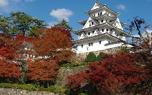 戦国時代末期の永禄2年(1559年)、郡上を治めていた東氏(とうし)と家臣の遠藤盛数が、郡上支配を巡って戦が起きた際、牛首山(現在の八幡山)の山頂に陣を置いたことに起源する山城。明治維新を経て、石垣を残し取り壊されるが、昭和8年(1933年)に再建された。木造の再建城としては日本最古。文豪・司馬遼太郎も「街道をゆく」の中で、感動を記した美しい山城で、郡上八幡の城下町や奥美濃の山々が一望できる絶景スポットとして知られる。もみじの名城としても有名で、新緑はもちろん、11月の紅葉は「天守炎上」と例えられる圧巻の光景が楽しめる。
