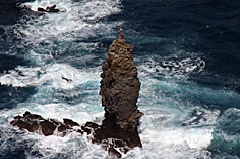 景勝地ローソク島を楽しめる遊覧船。福浦岸壁または赤崎岸壁から、奇岩や岩礁の連続する美しい海岸線を眺めながら、日の入りの時刻にあわせて尾白鼻沖に立つローソク島をめざす。西の空に沈む夕陽が島の先端にかかると、名前の通り、ローソクに火が灯ったかのように見える。自然が創り出す芸術は、息をのむほどドラマチックで感動的。出港から帰港までは約50分。隠岐諸島で最大の島後は、ほぼ円形で直径は20kmほど。ローソク島は島後の北西部に位置する。