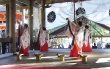 県立自然公園梶ヶ森の7合目に位置する滝。落差20mを豊富な水量が流れ落ちてゆく姿は迫力がある。滝壺にはアメゴや山椒魚なども生息し、樹齢数百年の杉の木に囲まれた滝の周辺は空気が澄んでひんやりとしている。冬には、凍りつく滝を見ることができる。「日本の滝100選」に選ばれている。