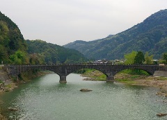 名勝犬走りの上流約150mのあたりに、山国川の本流をまたいで架かる全長89mの羅漢寺橋は、一つの脚経間が26.8mもの大きなアーチを持つ日本で2~3番目に長い橋。3連アーチの橋脚が長く優美なことから、石橋のお姫様と称されている。