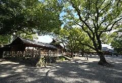 熱田大神(天照大神)を祭神とし、「熱田さま」と呼ばれて、名古屋周辺のみならず全国からあつい崇敬を集める神社。毎年6月5日の例祭「熱田まつり」をはじめ、年間70度におよぶ祭典や神事を行う。三種の神器の一つ草薙神剣(くさなぎのみつるぎ)を祀る神社としても有名で、数多くの刀剣類のほか、国宝や重要文化財を含む約6000点の貴重な宝物を収蔵する。敷地は約9万平方mもあり、神苑にはクス、ケヤキ、カシ、シイ、ムク、イチョウ、クロガネモチなどの樹木が育ち、四季を通してさまざまな景観を呈する。