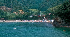 岩場が美しい静かな漁村にあり、磯遊びも楽しめる海水浴場。家族連れの海水浴に人気がある。ベテランの漁師さんの案内で沖に出て、釣りをすることもできる。有料駐車場あり。