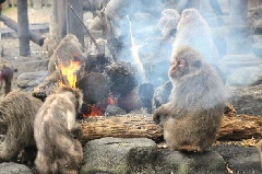 冬の風物詩「たき火にあたるサル」