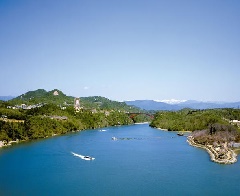 大正時代に建設されたダムによってできた湖で、日本百景にも選ばれた景勝地。「恵那…