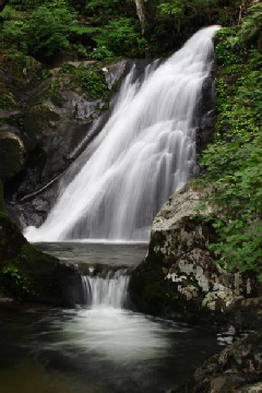 大小無数の滝が点在する宇津江四十八滝には、四十八滝不動明王が祀られている上段滝…