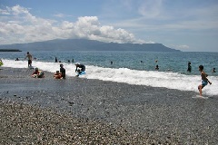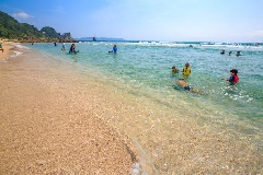 770mもの雄大な浜、整った環境で、サーファーや家族連れに人気のビーチ。外国人…
