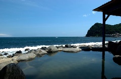 昭和初期の開湯で地元の漁師が海底で発見した。泉質は塩化物泉・硫酸塩泉。海沿いに…