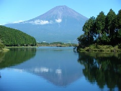 広大な朝霧高原の一角に位置し、富士山の全景を真東に仰ぐ湖。東西1km、南北0.…