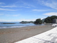 松崎温泉郷の中にある海水浴場。全長500m余りの遠浅で美しい砂浜が魅力。町内で…