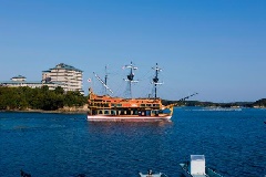 大航海時代のカラック船をモチーフにした帆船型遊覧船「エスペランサ」で、紺碧のあ…