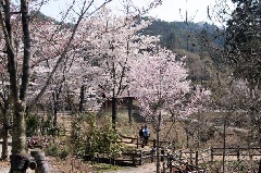 岩村町の史跡「吉田川経塚」には大きなシダレザクラが1本あり、例年3月下旬から4…