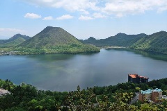 上毛三山の一つに数えられる複式火山。火口原湖の榛名湖を囲む外輪山があり、中央火…