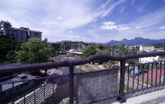 日本三奇勝の一つ、妙義山が望める碓氷川の清流沿いにある温泉地。温泉地図記号の発…