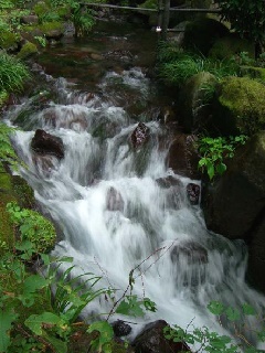 静かな山間に昔の「村」を再現したような風景が広がる。200年以上前から自噴する…