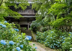 「たくみの里」内にある、延慶2年(1309年)の開山とされる曹洞宗の寺。山門、…