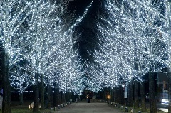 古代蓮会館内や会館周辺の木々にイルミネーションが施され、華やかにライトアップさ…