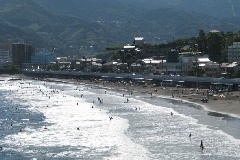 澄んだ水と砂鉄を含んだ砂が特徴の、遠浅で波静かな海水浴場。初島をはじめ、天気の…