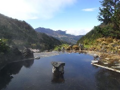 絶景で知られる野天風呂からは、晴れた日には遠く北アルプスまで望むことができる。…
