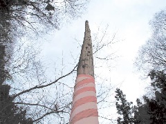 「道の駅おがわ」のなかにあるオブジェ。「へそ」とは標高差を無視した本州の平面図…