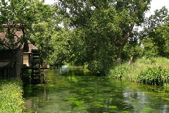 地元では「花見(けみ)」と呼ばれる湧水を源とした川。名水百選のひとつ「安曇野わ…