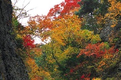烏帽子岳山麓の長さ約4kmにわたる大渓谷で、長野県下有数の景勝地。「鬼の門」、…
