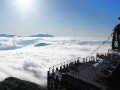 標高1770mの山頂急斜面に建てられた雲の上のテラスからは、条件が合えば、眼下…