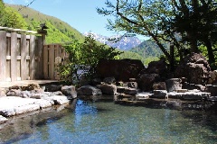 雄大な穂高連峰を望む、標高1540mの原生林の中にある温泉で、源泉掛け流しが自…